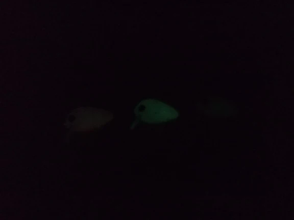 воблеры сделаны качественно. все три светятся в темноте некоторое время после выдержки на свету, сильнее всего зеленый, розовый слабее, жёлтый вообще еле видно. в подарок приложили блесну на 2.7г в цвете "нагибатор" и открыточку с поздравлениями. очень приятно. крючки безбородые, на вид качественные. менять и проклеивать не надо ничего. пробовать буду, когда лёд сойдёт.