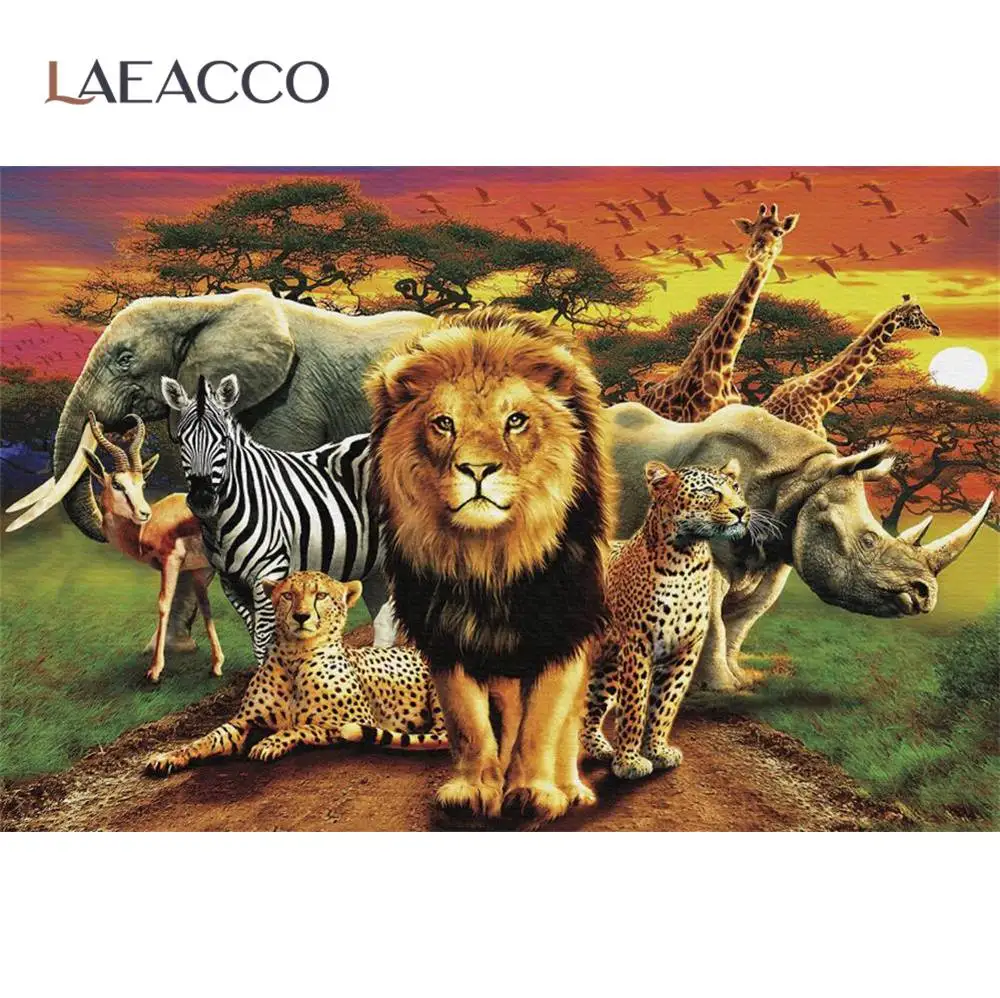 Laeacco джунгли сафари лев Король слон животные Дети Обучение вечевечерние Постер фото фоны фотографический фон фотостудия