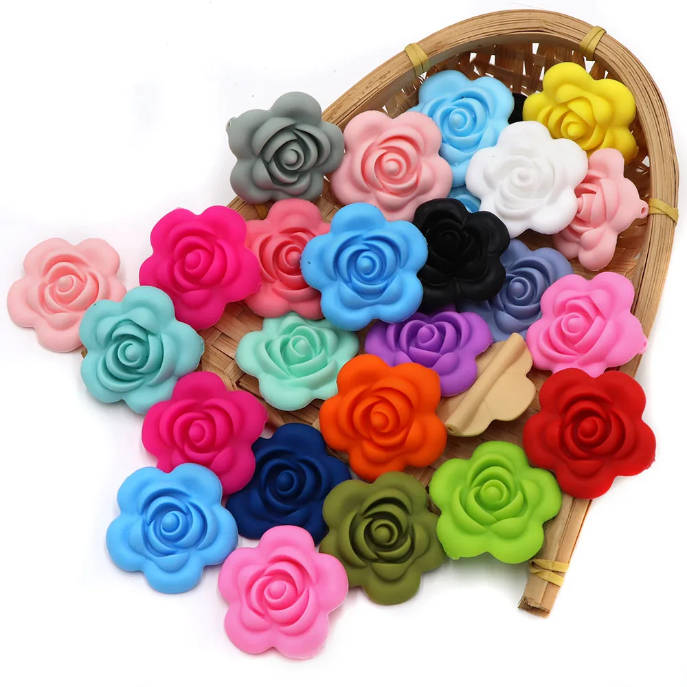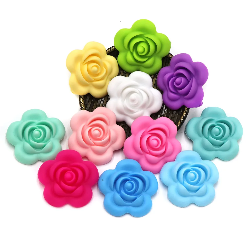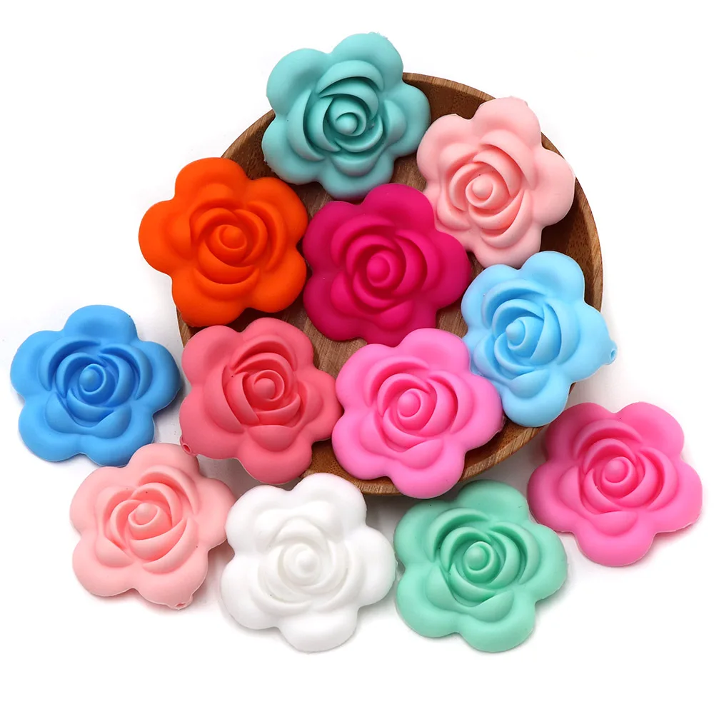 BOBO.BOX, 10 шт., розовые силиконовые бусинки, Детские Прорезыватели, аксессуары, силиконовые прорезыватели, бусинки, цветок для детей, прорезыватели, ожерелье, изготовление
