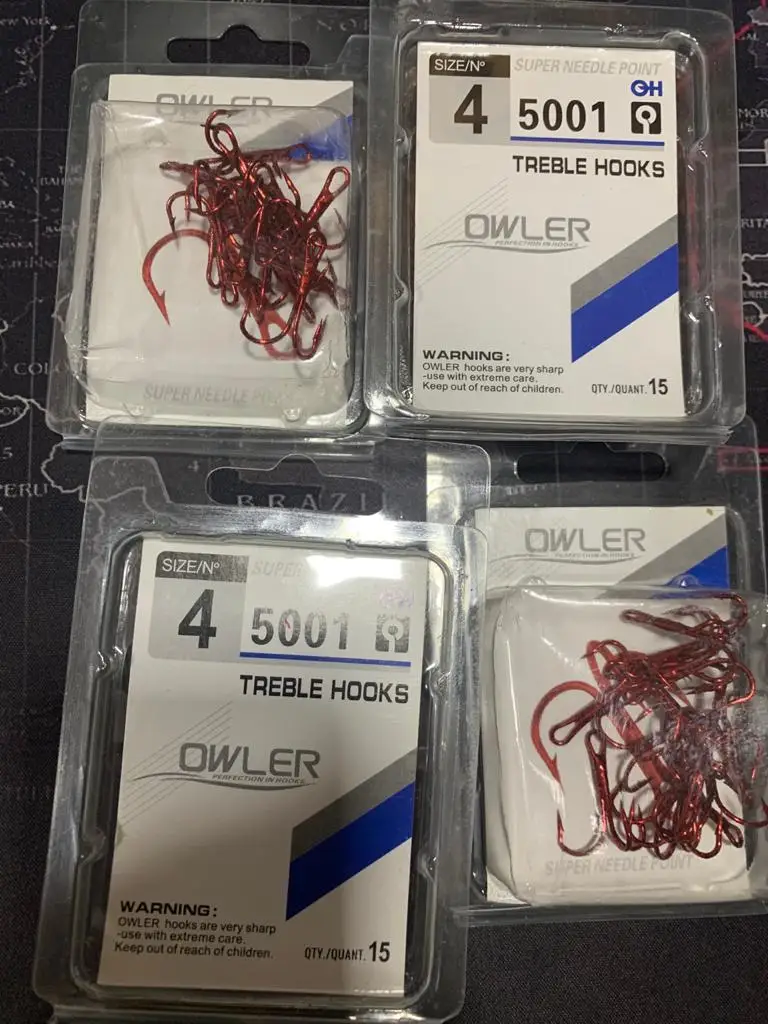 15 шт.коробка, тройные Крючки owner, 3 цвета, размер 1 #-14 #, круглые, изогнутые тройные, морской окунь Стальные рыболовные крючки, твердые тройные Крючки