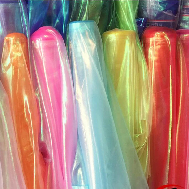 Прозрачная голографическая ткань, 1 метр, дизайнерская флуоресцентная ткань, цветная блестящая марлевая ткань, сценический Свадебный декор
