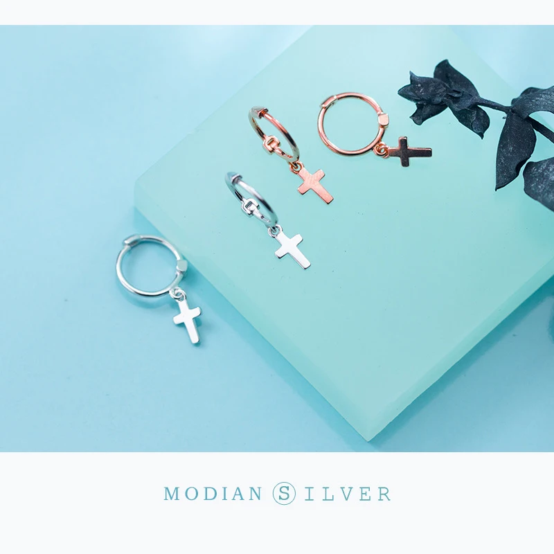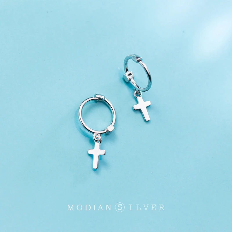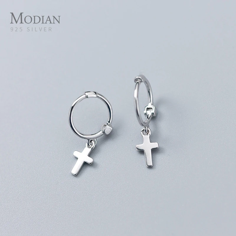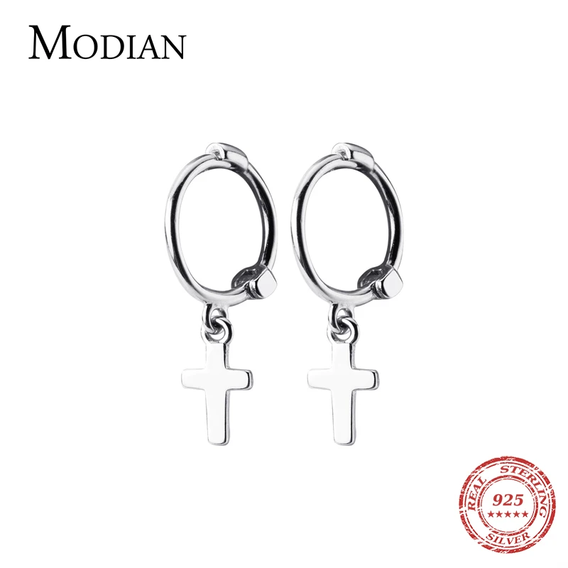 Modian Классический роскошный крест серебряные серьги-кольца для женщин из натуральной кожи 925 стерлингового серебра сверкающий Уникальный Вечерние ювелирные изделия Brincos
