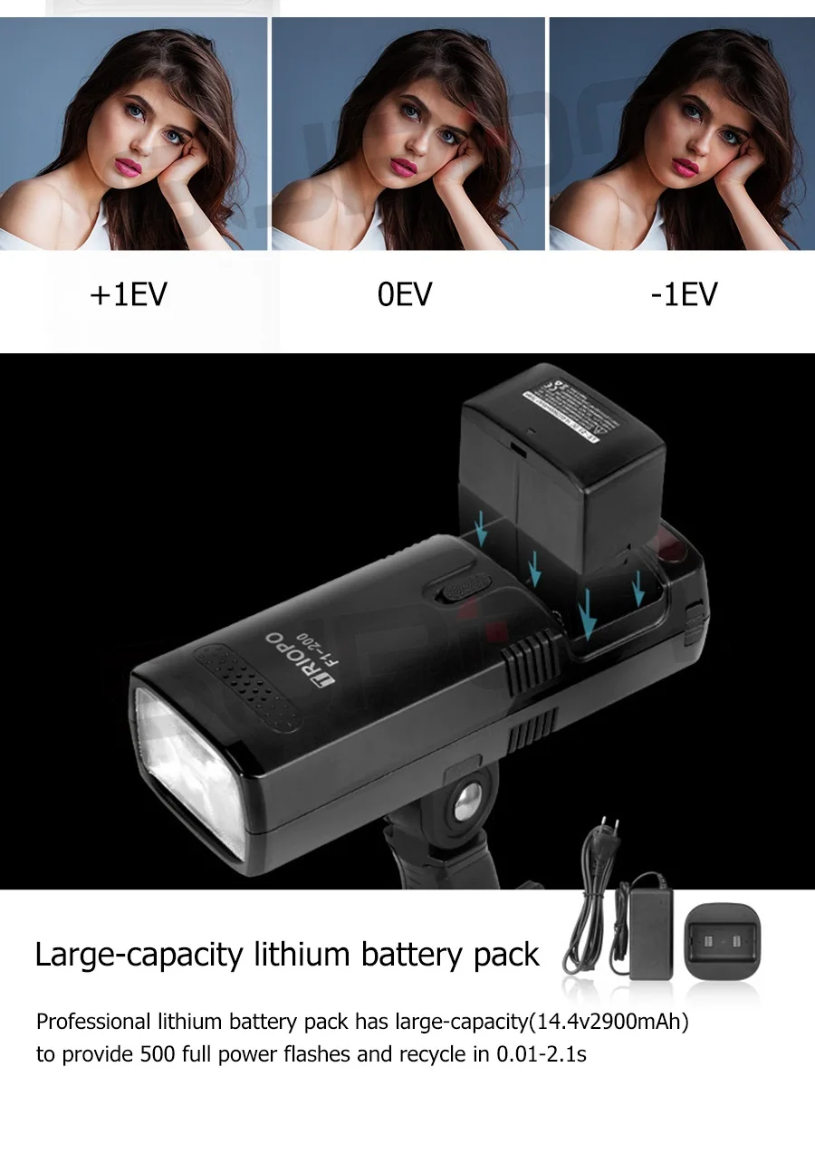 Мощный, компактный и портативный: мощность вспышки составляет до 200 Вт, что позволяет легко переносить.