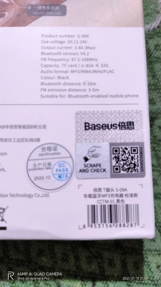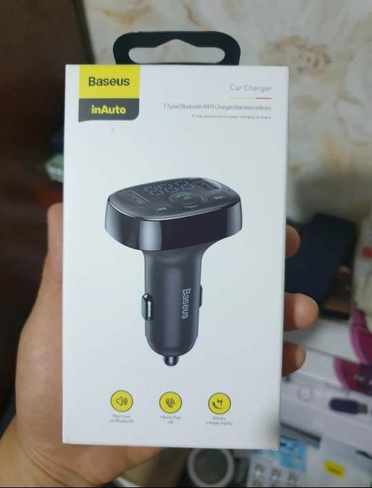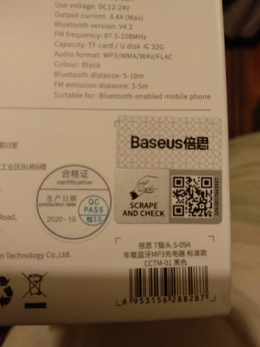 Покупал в подарок. Как всегда Baseus на высоте. Сразу видно бренд. Есть наклейка, плюс стикер с защитным покрытием для проверки на официальном сайте. Однозначно советую заказывать! ... Кстати качество лучше чем у дешёвых фм-свистулек! Самое главное, выбирайте свободную частоту у которой до и после хотя бы +-1~2 мегагерца тишины. Например 88.8 или 108.0. Потому что радиостанции почти все на 100 диапазоне