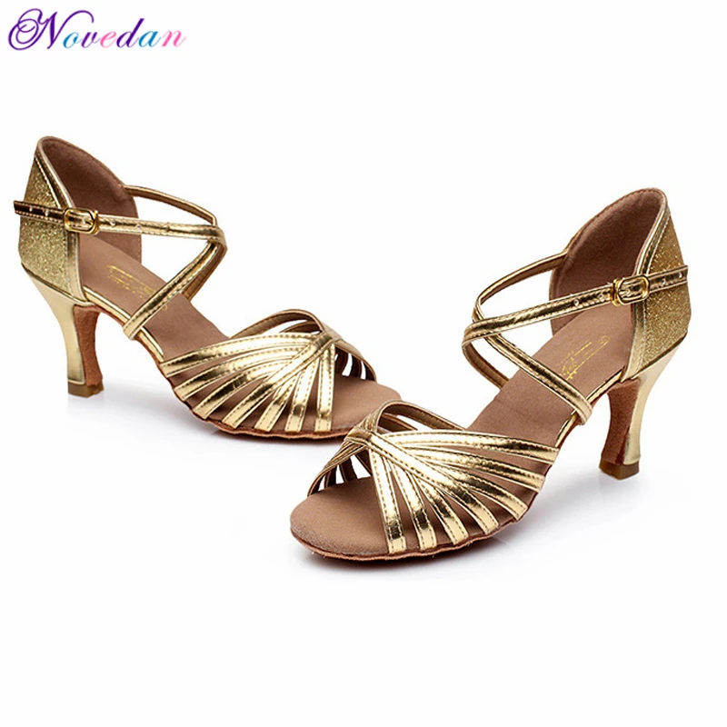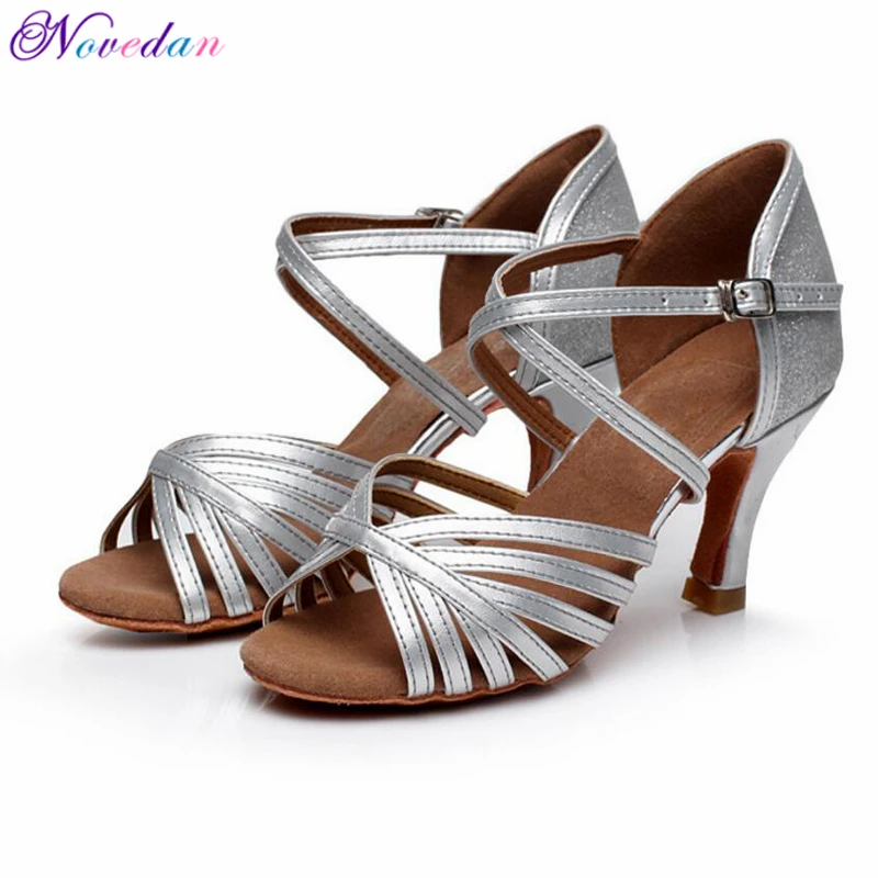 Туфли женские для танцев сальсы, Каблук 5 см7 см, цвет серебристыйзолотой