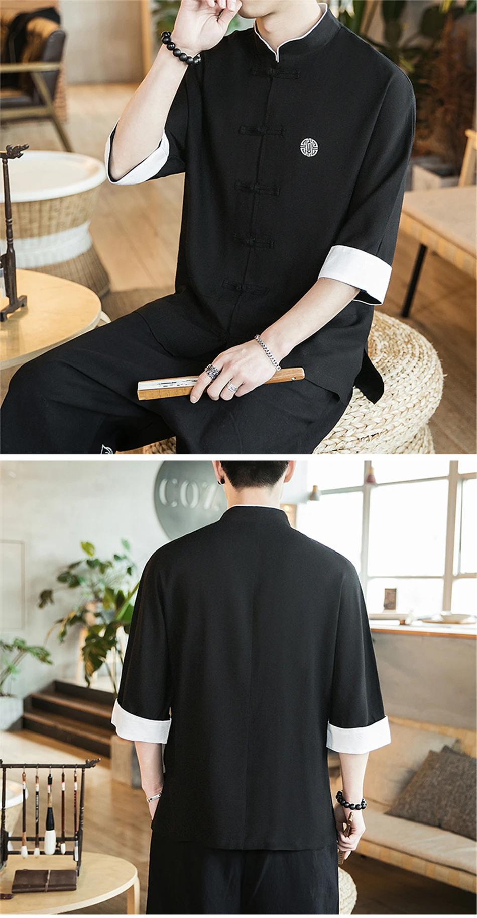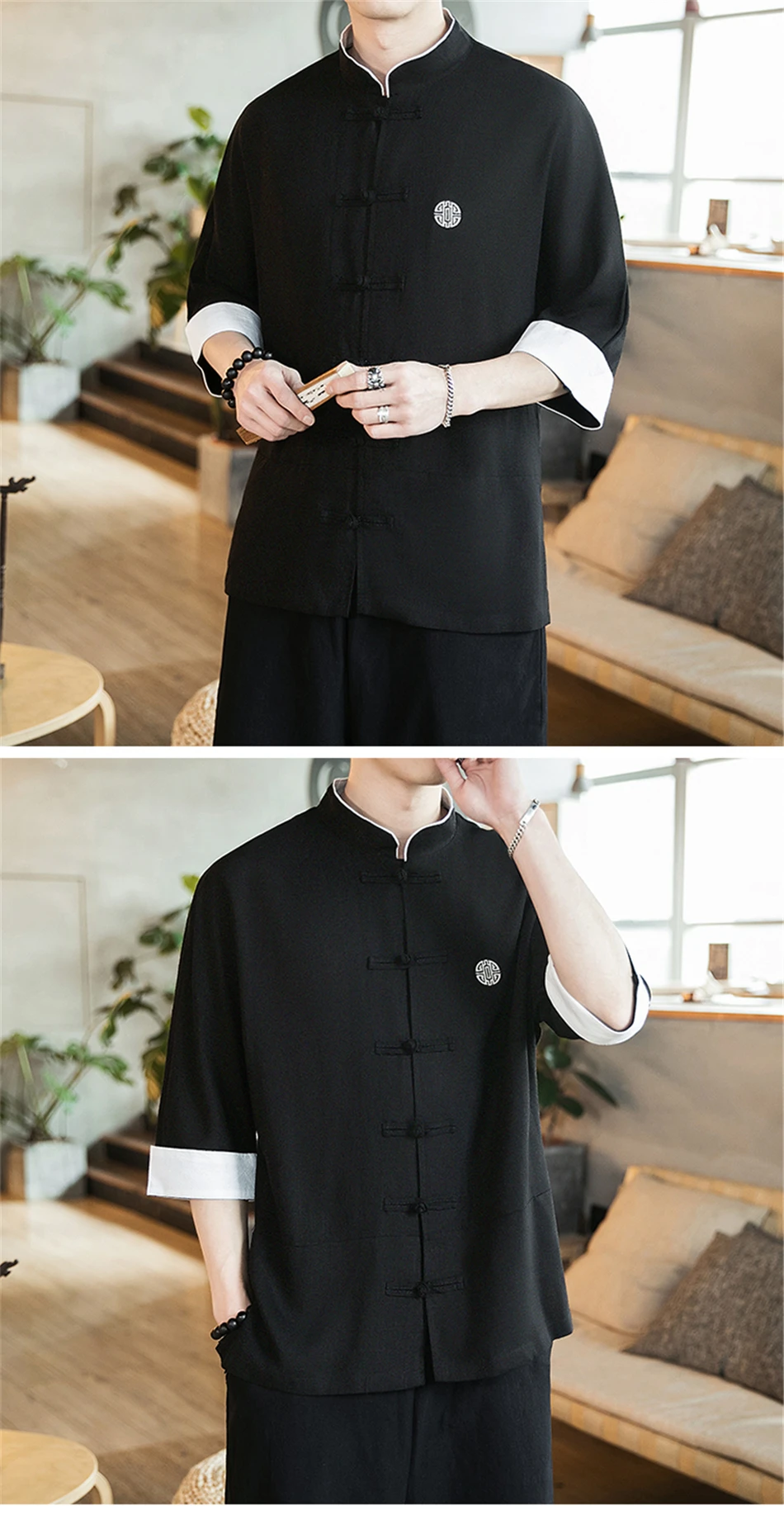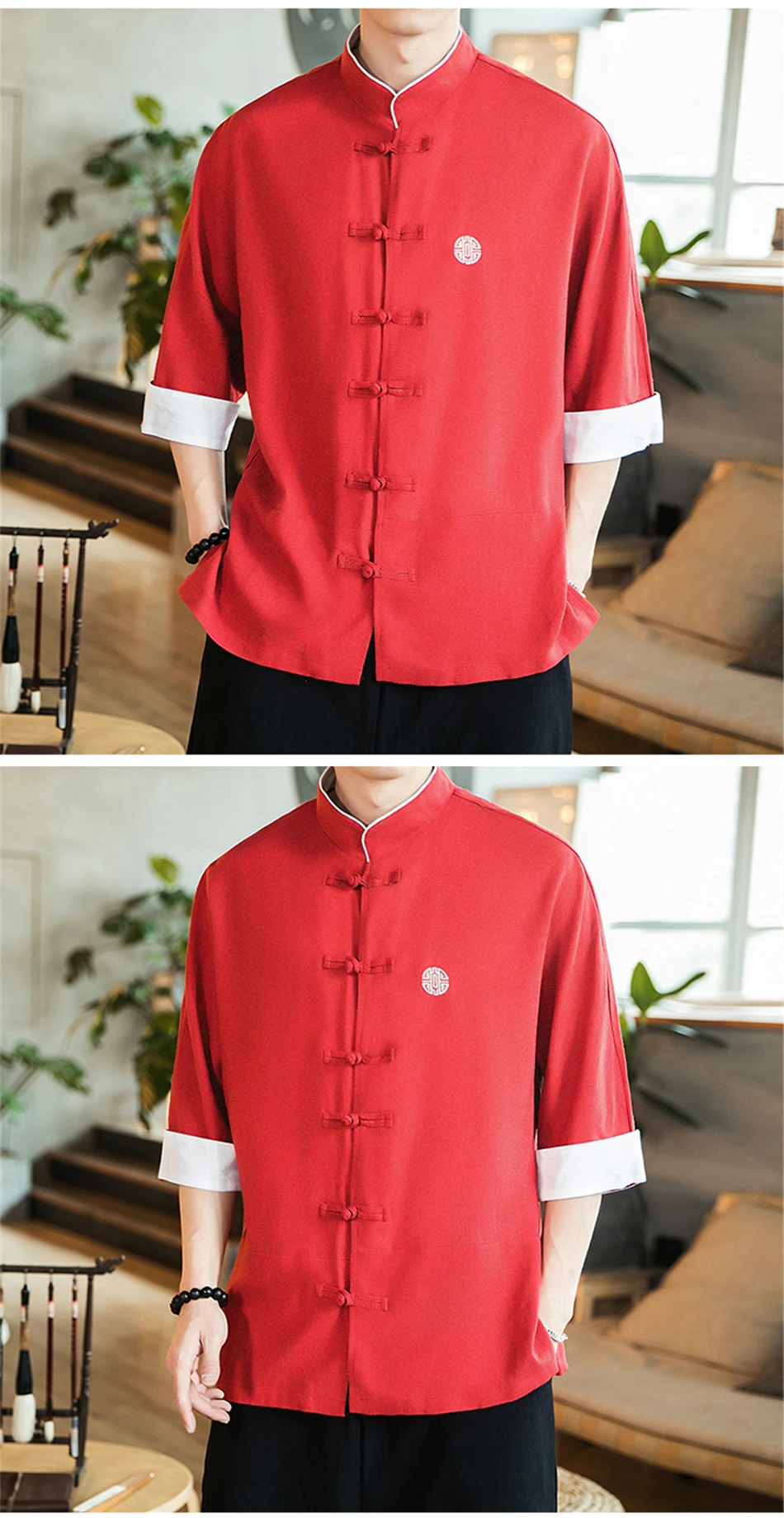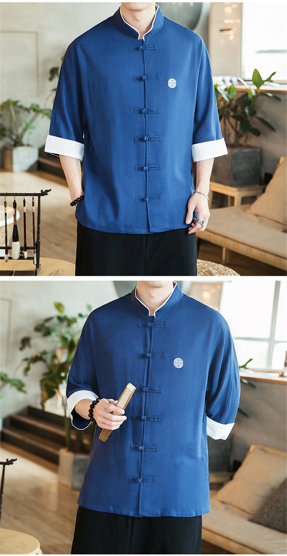 Новинка 2022, мужские топы в китайском стиле, льняная рубашка с длинным рукавом в китайском стиле