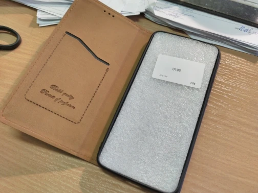 Отличный чехол, натуральная кожа,плотный, хорошо проклеен и прошит, смотрится дорого. И главное - это магнитная клипса, ее не видно, но она работает. Кармашек для карточки ХОРОШИЙ БОНУС. Рекомендую. (в Москву шло 10 дней)