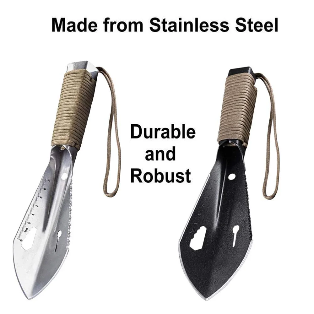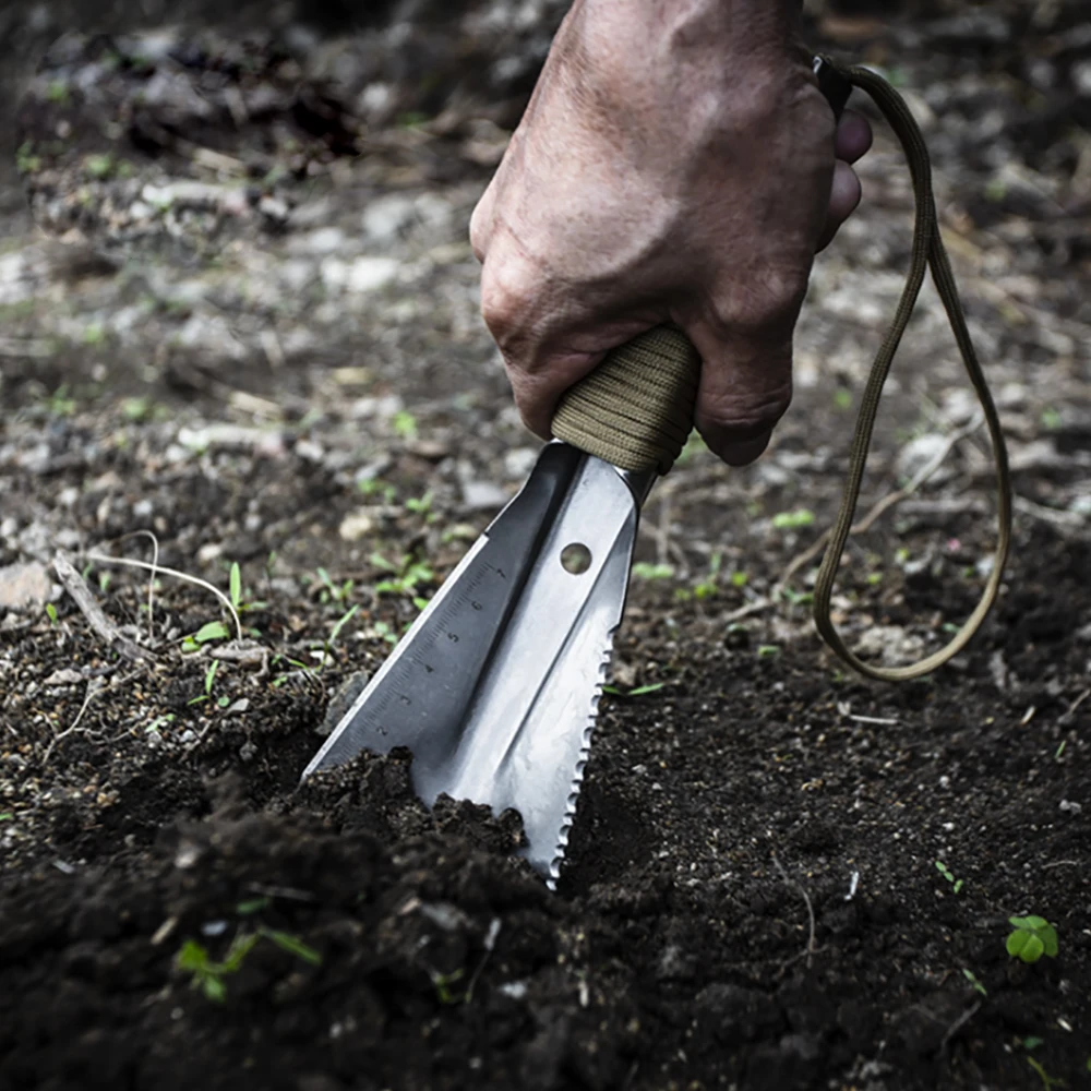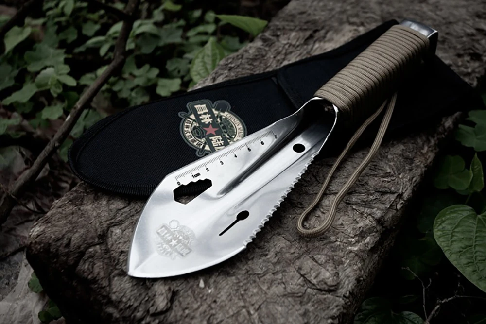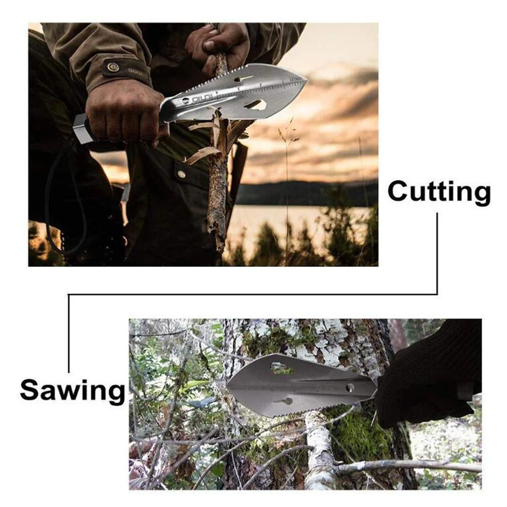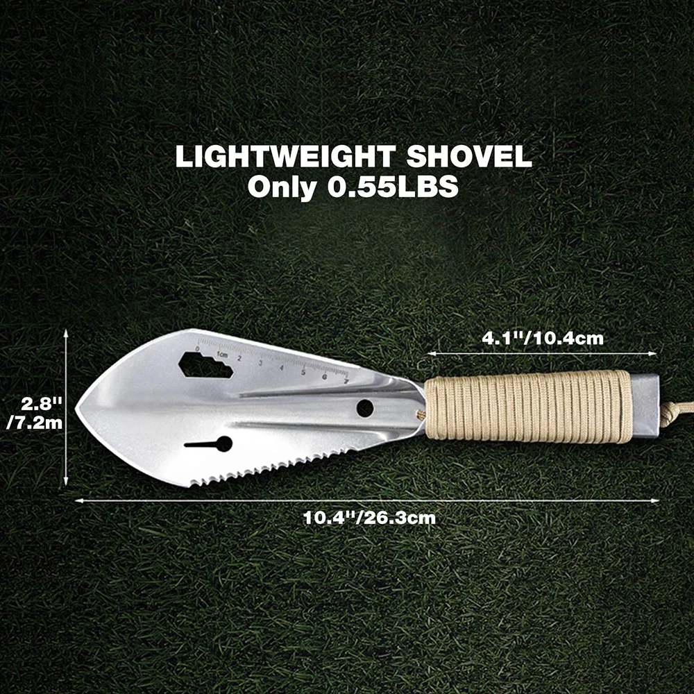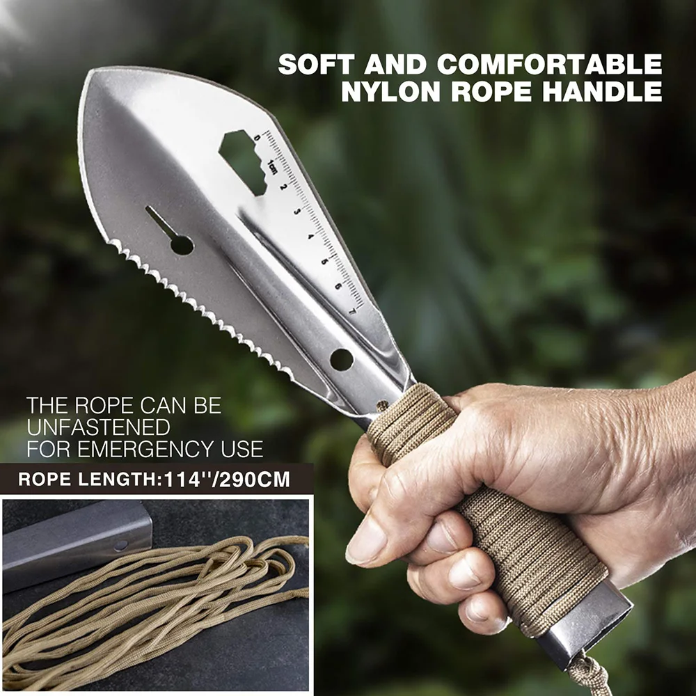 2. Многофункциональная-эта переносная Лопата имеет обычную мастерку или даже нет: лезвие, пила, линейка, клипер для ногтей, шестигранный ключ, Паракорд (110 дюймов). Используя этот портативный шпатель в грязи, песке или снегу, в качестве гвоздя для палатки в ветреный день, его также можно использовать как запасную палатку.