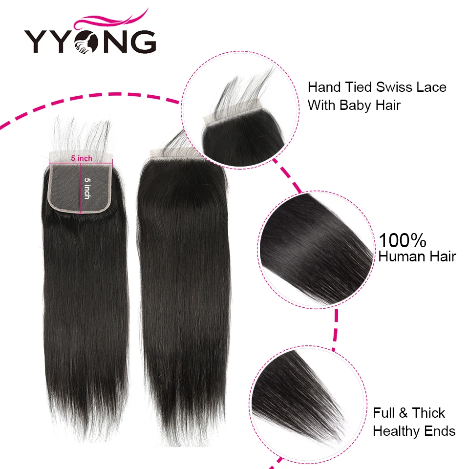 Волосы Yyong 5x5 с прядями, 14-30 дюймов, перуанские прямые пряди с...