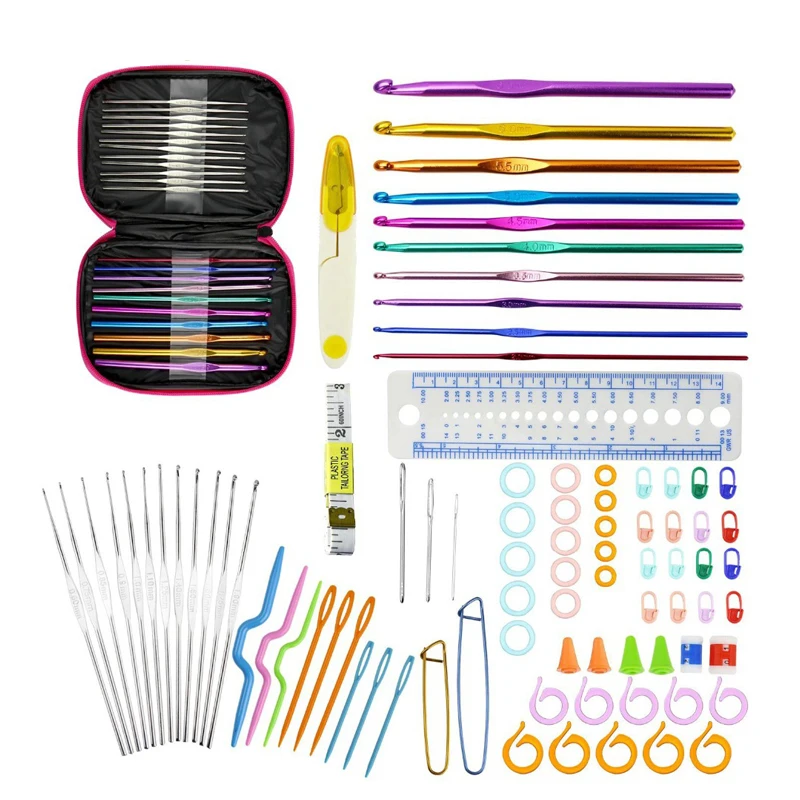 90 шт Алюминий Looen крючки комплекты Вязание крючки Иглы пряжа набор для рукоделия с Вязание аксессуары с розовым Чехол швейные инструменты, нержавеющая сталь
