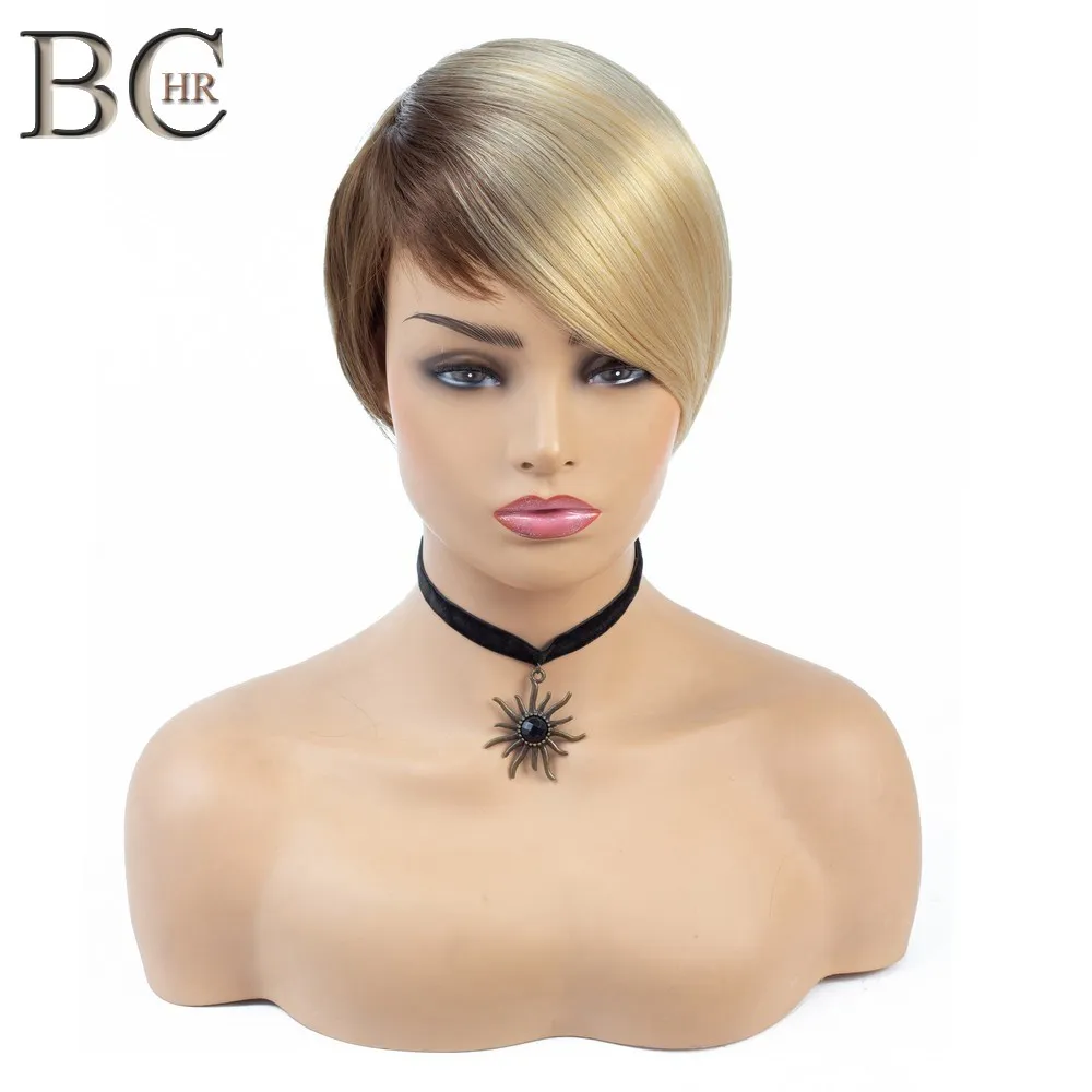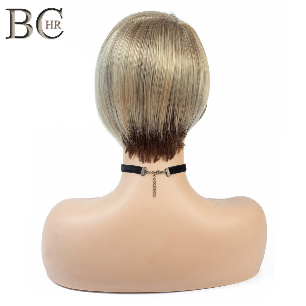 BCHR короткие прямые синтетические волосы парики для женщин Омбре коричневый блонд парик короткие боб парики высокотемпературное волокно