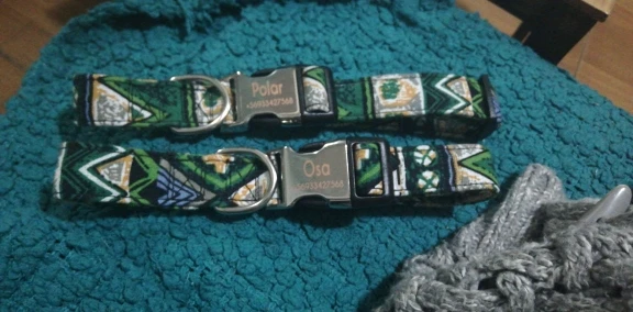 Я заказал 2 разных воротника, они такие же, как на фотографиях, также нет проблем с персонализированными деталями на них, я очень доволен своим заказом, отлично смотрится на моем щенке.