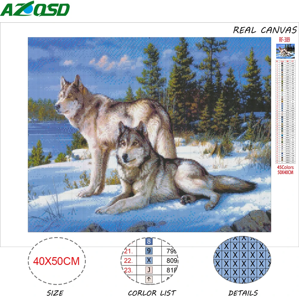 Алмазная 5d картина AZQSD сделай сам, Алмазная мозаика "Волки", животное, домашний декор, алмазная вышивка, картина из Стразы, ручная работа