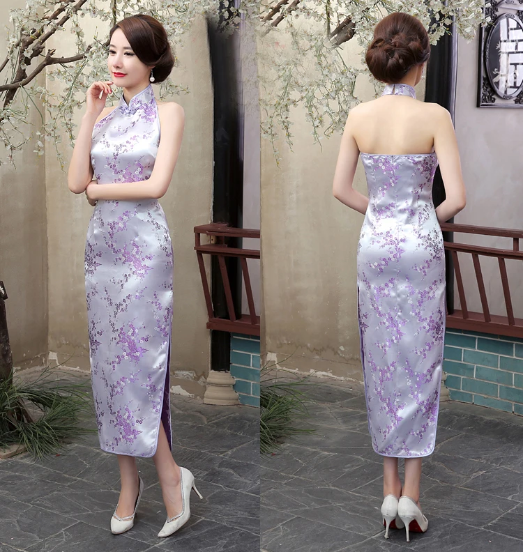 Женское атласное платье с открытой спиной, темно-синее винтажное вечернее платье в китайском стиле Ципао с цветами, размеры S, M, L, XL, XXL, XXXL