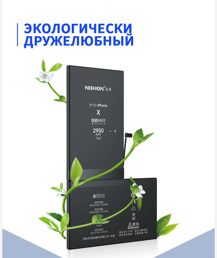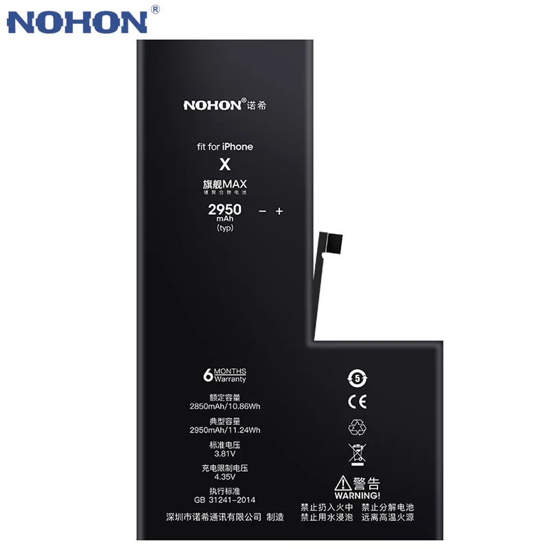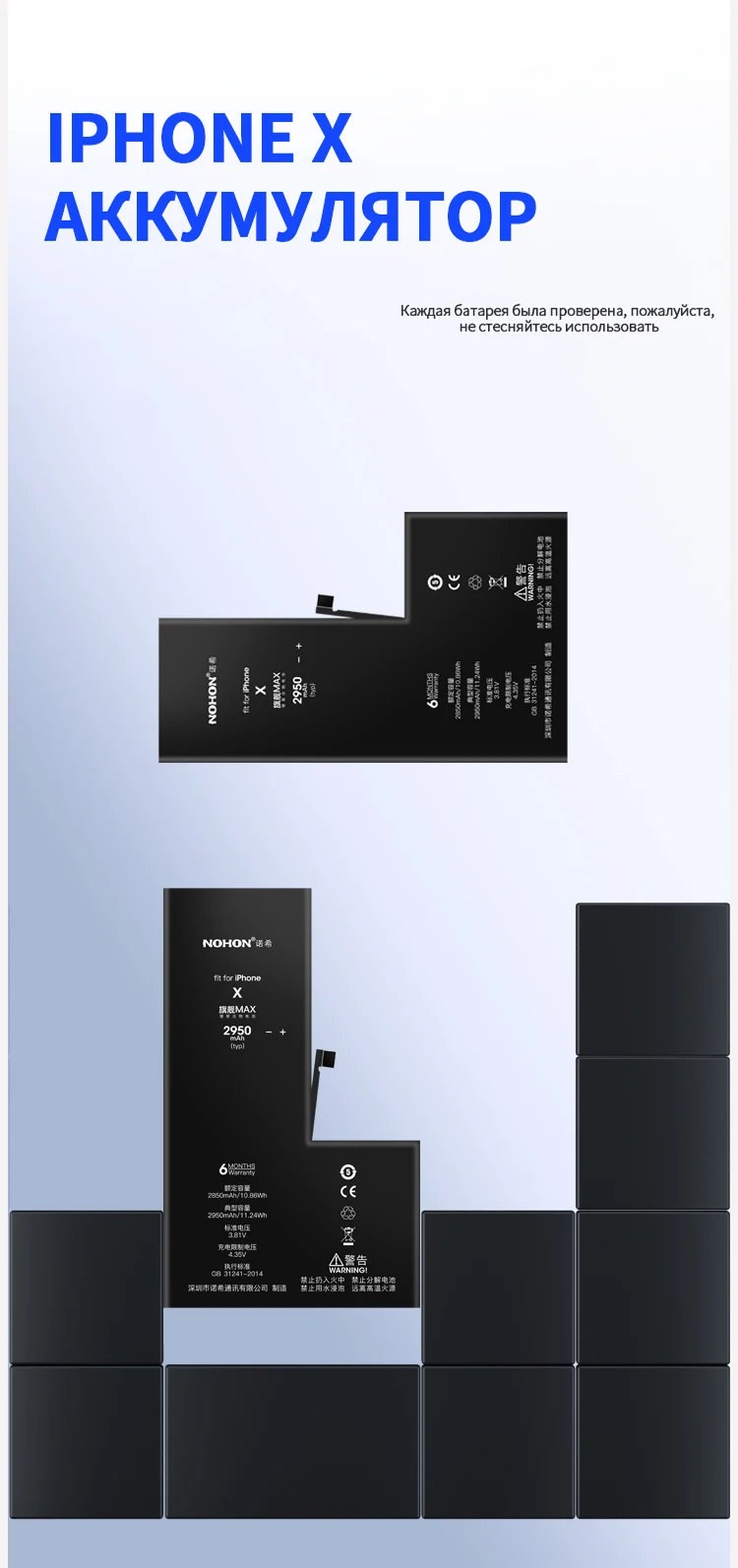 Аккумулятор NOHON для iPhone XS MAX, XR, 8, 7, 6, 6S Plus, X, SE