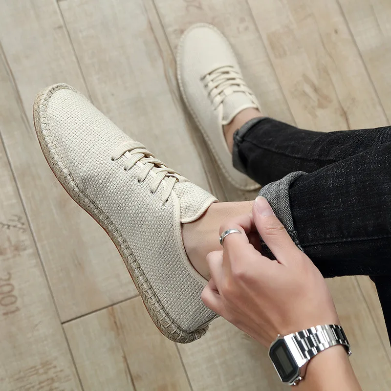 Кеды мужские льняные, повседневная холщовая обувь, дышащие ботинки с плоской подошвой, черныебелые, летние кроссовки, эспадрильи