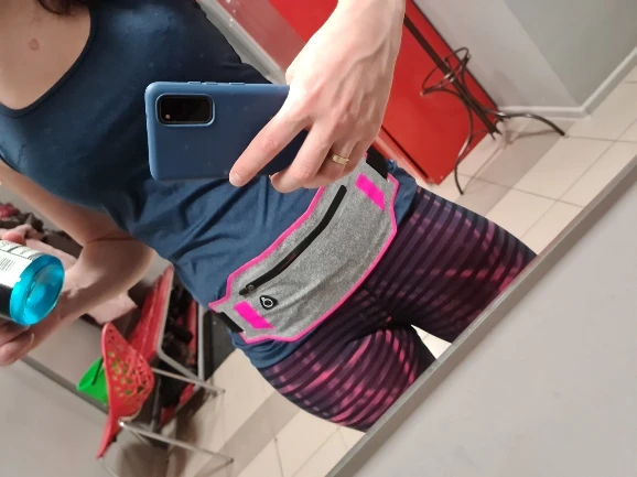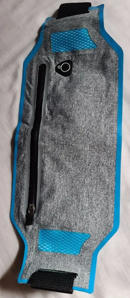 Прямо как на картинке. Он тонкий, внутри он имеет два отсека, ремень регулируется на любой талии, так как он растягивается.