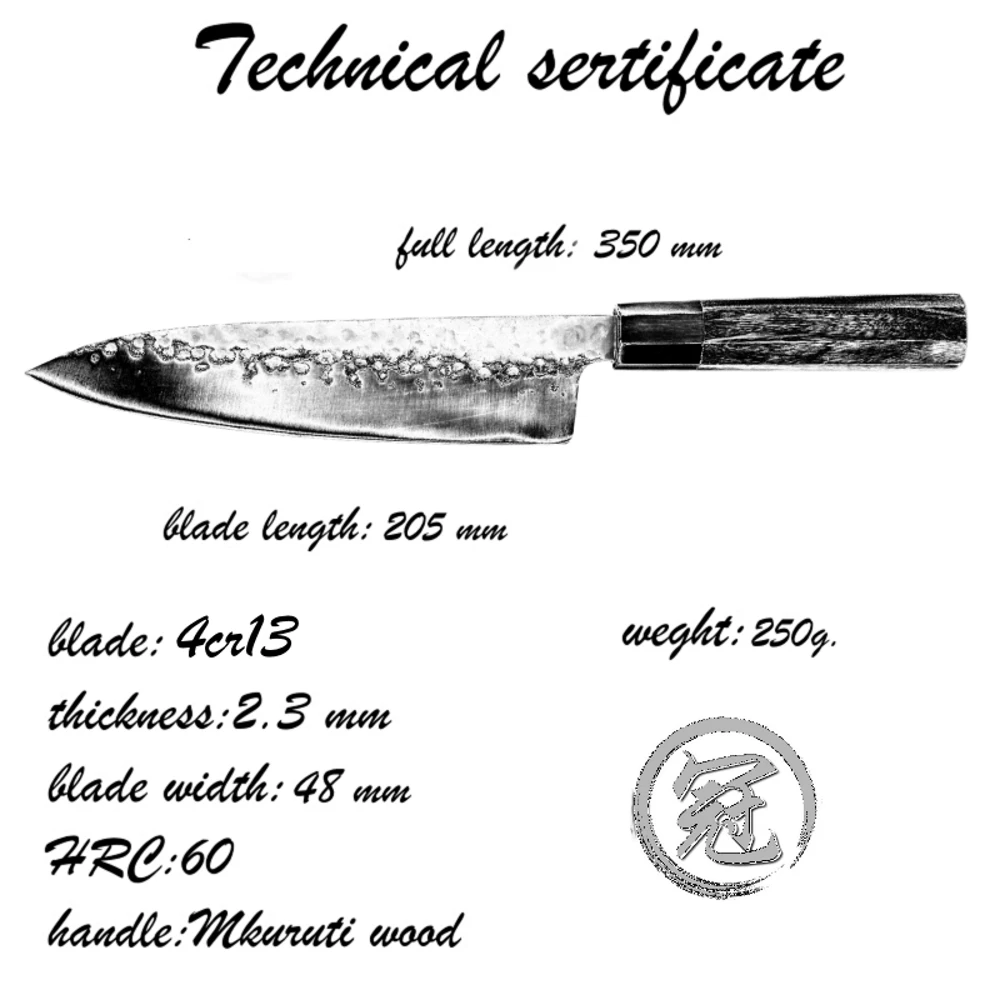 Нож шеф-повара Grandsharp ручной работы, японская кухня, Высокоуглеродистая сталь 4cr13, Gyuto PRO, инструменты для нарезки, африканская деревянная ручка