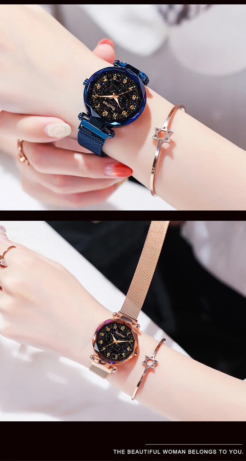 Женские наручные часы 2019, женские часы со звездным небом на магни...