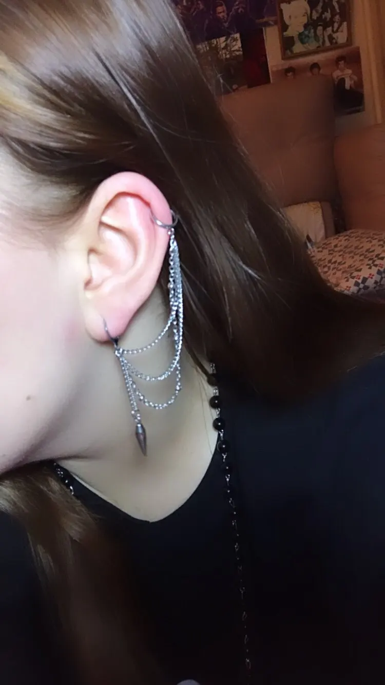 Серьги очень красивые и классные! Ношу без проколов, на мочке уха, ничего не болит. Но если надевать на хрящ, то спустя час носки ухо будет болеть, поэтому следует снимать их время от времени. Тем не менее, кто не хочет делать проколы сбоку, очень понравится эта замена.