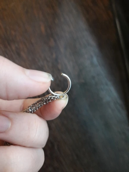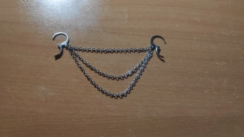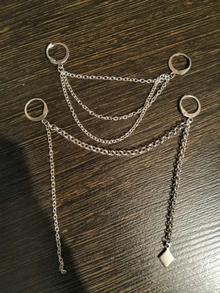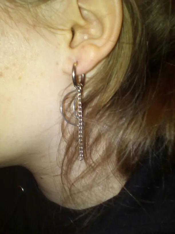 Ещё не носила, надеюсь аллергии на металл не будет. Украшение выглядит добротно и интересно, единственное, смущают кольца — они сплюснутые, угловатые, когда обычно крепления гладкие и скруглённые. Надеюсь, что они не будут резать и натирать проколы в ушах