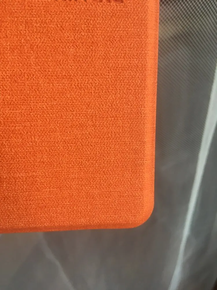 Я думал, что это ткань, но она пластиковая. Все еще довольно хорошо и хорошо работает при закрытии и открывании, выключении и включении kindle.