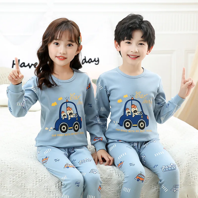 Пижама для мальчиков и девочек, из 2 предметов, осенняя, хлопковая