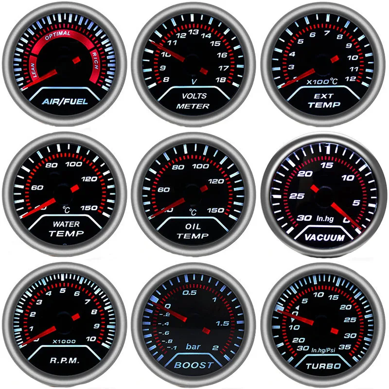 2 "52 мм Автомобильный манометр, бар psi, температура выхлопных газов, температура воды, температура масла, датчик давления масла, воздуха, топлива, вольтметр, тахометр, повышающие манометры