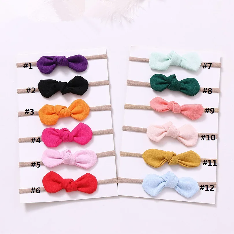 Детские нейлоновые повязки на голову для девочек, 6 шт.лот, головной убор с бантом, эластичные повязки на голову, милая повязка для волос для маленьких принцесс, аксессуары для девочек