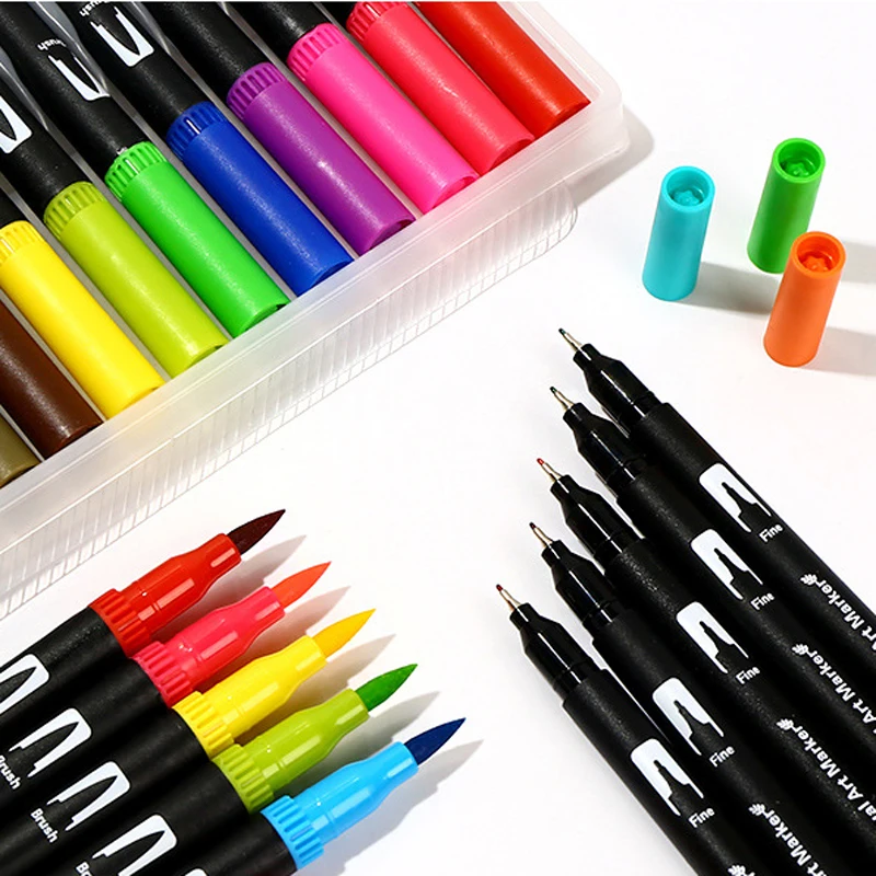 Художественные маркеры с двойной кистью, 100 цветов, ручка с тонким наконечником и наконечником кисти, ручки для цилиндрических журналов, для взрослых, книжки-раскраски, каллиграфия, надпись