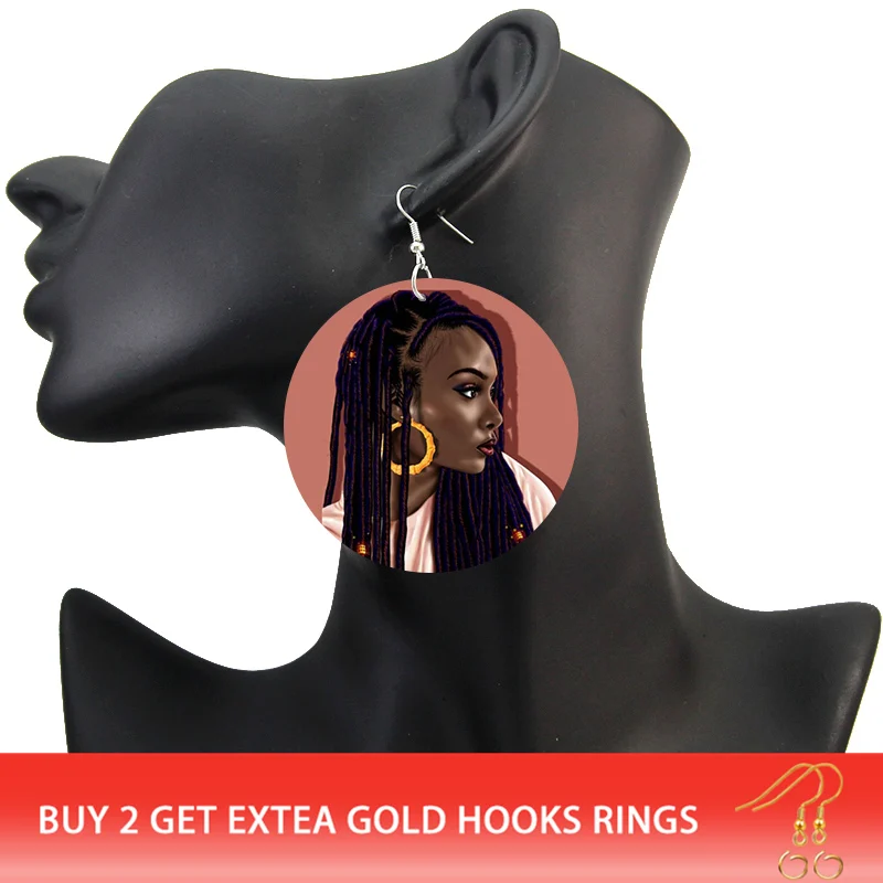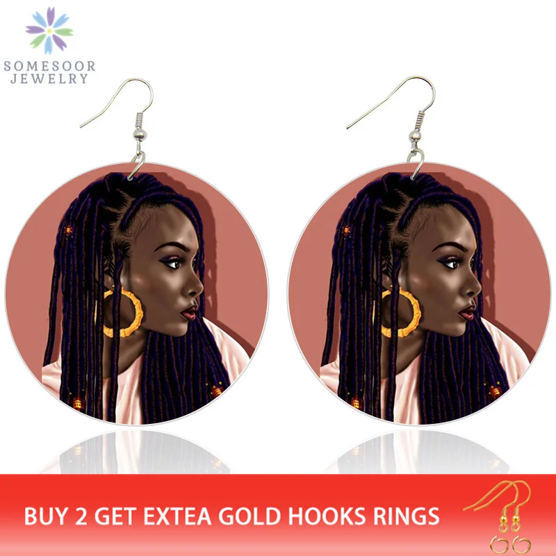 SOMESOOR печать афро крули девушка африканские серьги из дерева чер...