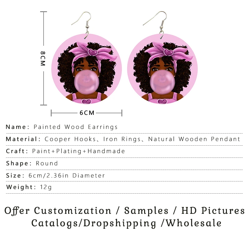 SOMESOOR прекрасные розовые афро-девушки с жвачкой, деревянные серь...