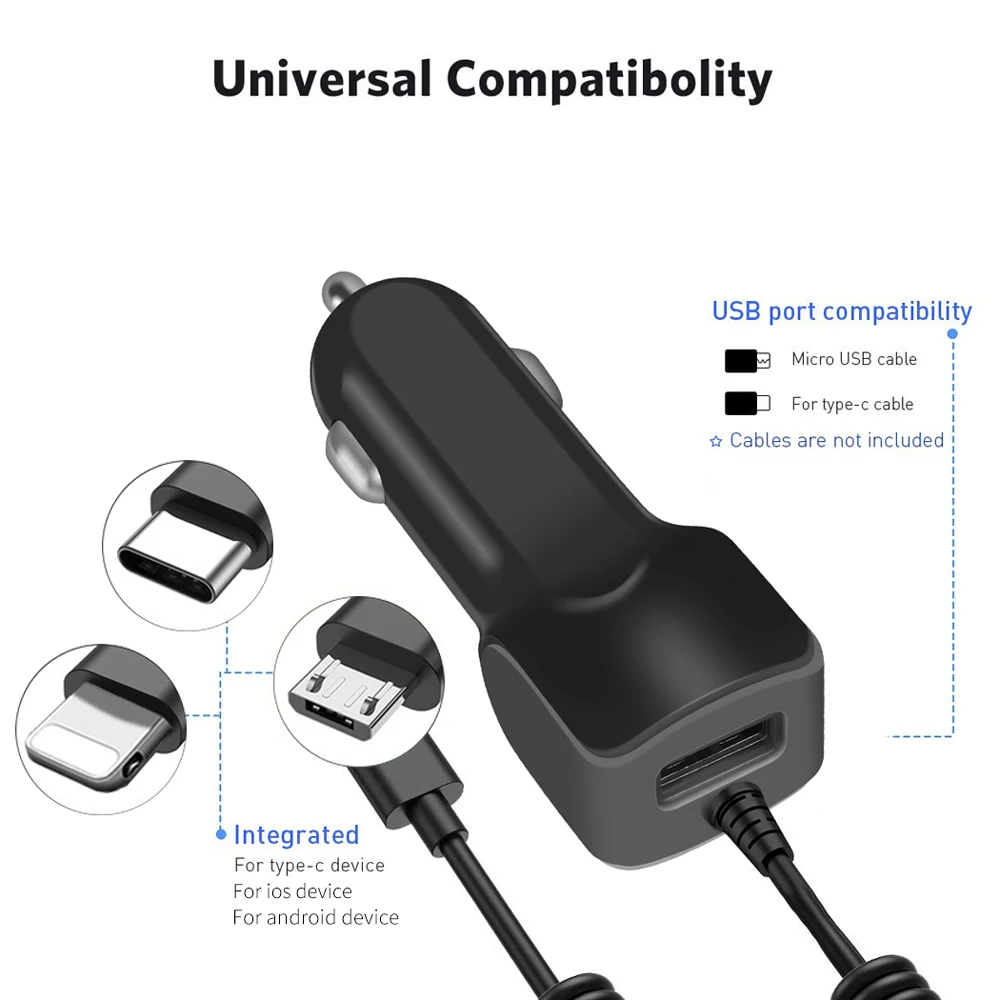 Автомобильное зарядное устройство Type-c для android, быстрая зарядка с кабелем для iphone, автомобильное зарядное устройство USB для телефона Samsung, Xiaomi, Redmi Note 7