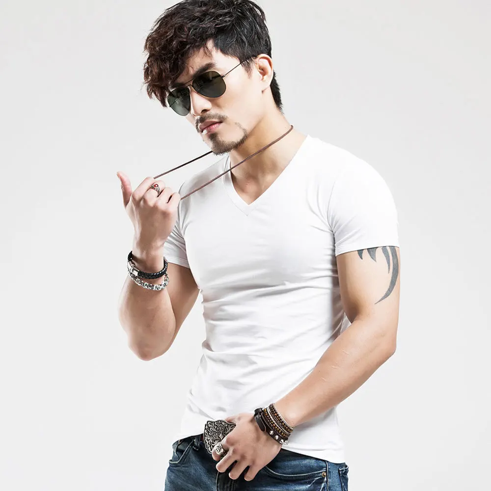 Мужская футболка с коротким рукавом и V-образным вырезом, 2022