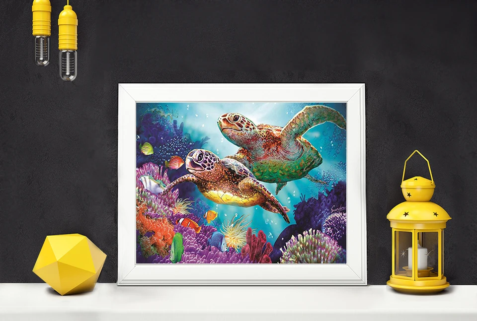 Полный квадратныйкруглый дрель 5D DIY Алмазная картина "Черепаха семья" 3D вышивка крестиком домашний декор A01098