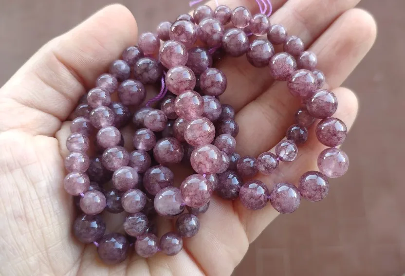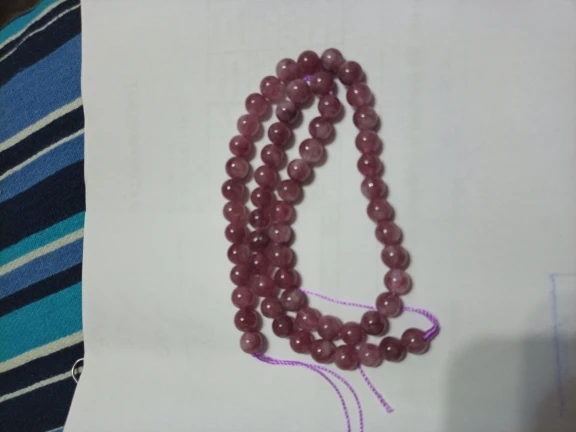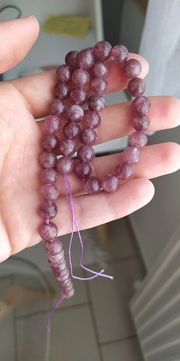 Это не лепидолит. Это тонированый кварц, в некоторых камнях в трещинах осталась краска. Из нити 10 процентов брака. Больше брать не стала бы. Это обман (((