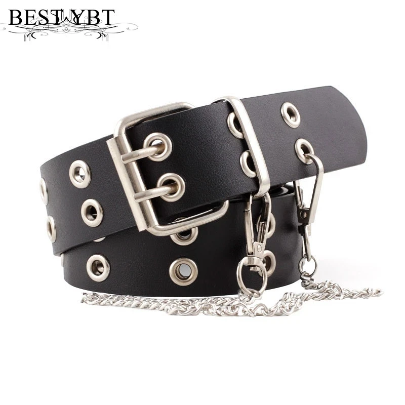 Женский ремень YBT из искусственной кожи, в стиле Панк, для джинсов, с пряжкой и цепочкой