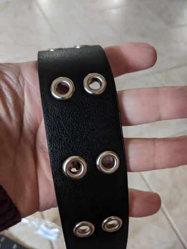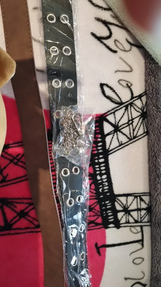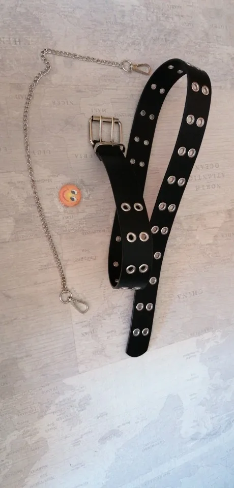 Точно так же, как на изображениях. Высококачественная искусственная кожа-толстый материал, но по-прежнему гибкий, чтобы носить как пояс. В упаковке был мягкий нефтяной запах, но через 2 дня после носки он ушёл. Упаковано хорошо. Ремень и цепь поставляются в отдельных пакетах внутри той же упаковки.