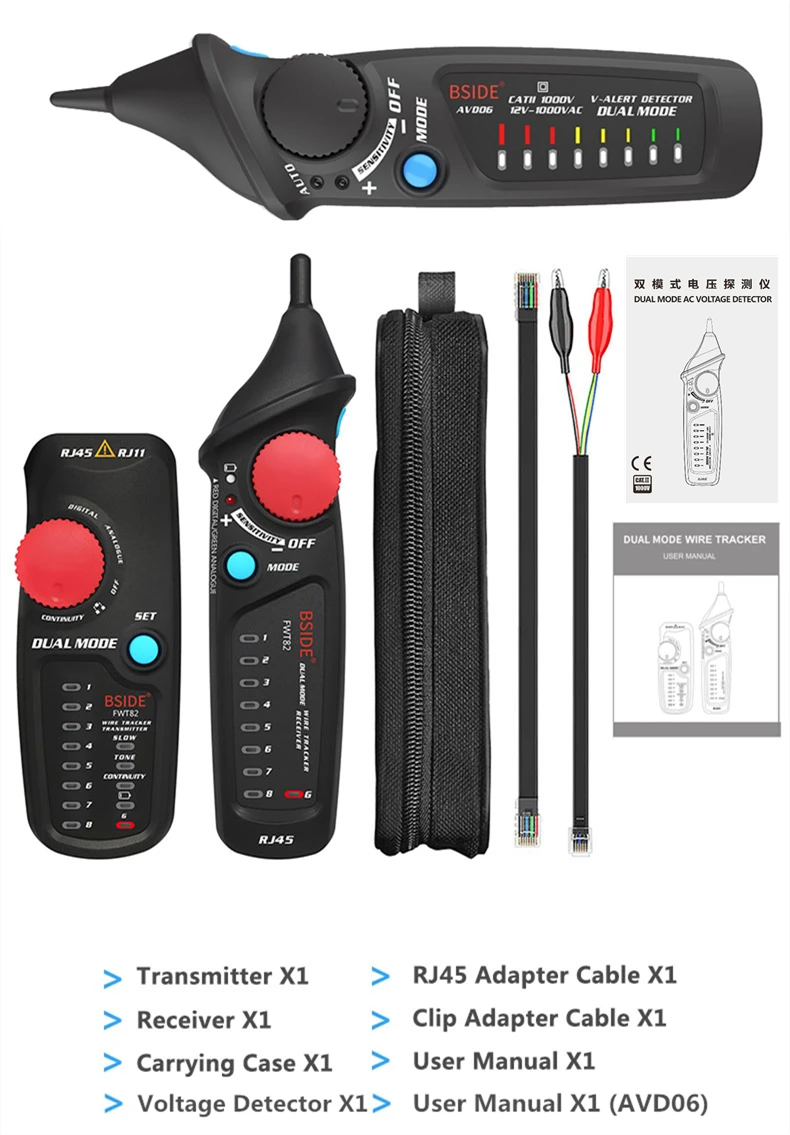 Цифровой режим сетевого кабеля BSIDE FWT82, тонер для проводов, RJ45, RJ11, Ethernet LAN, анализатор, детектор, поиск линии с AVD06