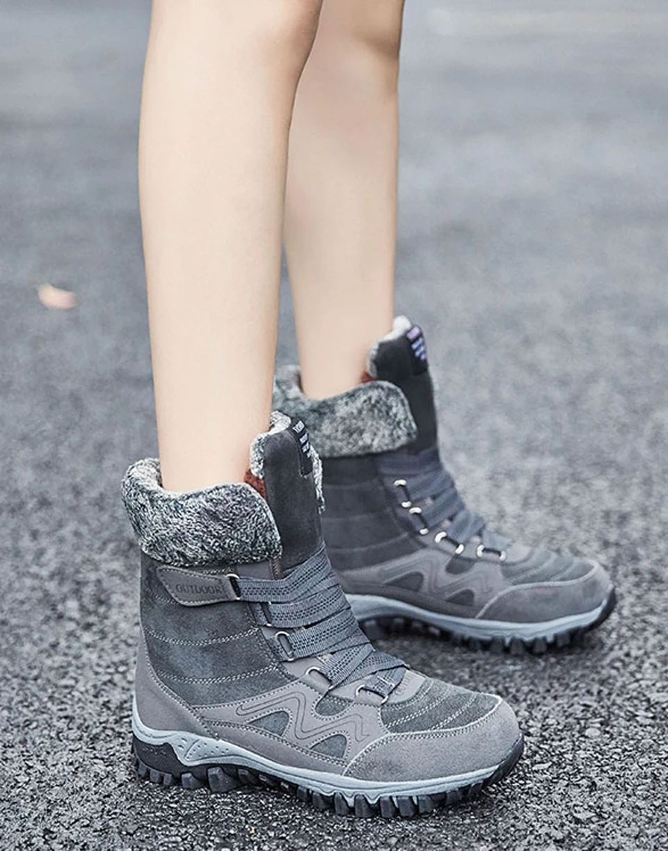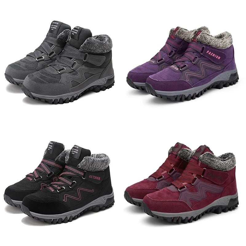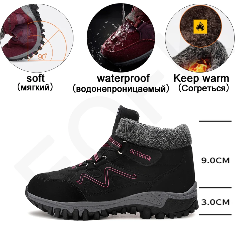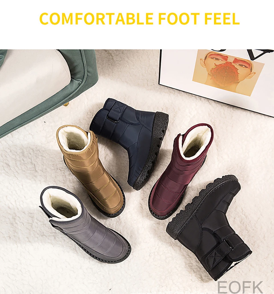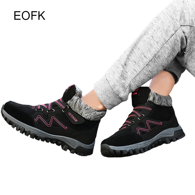 Женские ботинки из натуральной кожи EOFK, зимние теплые ботинки из натуральной кожи, на плоской платформе, с мехом, водонепроницаемые, плюшевые, повседневные, для снега
