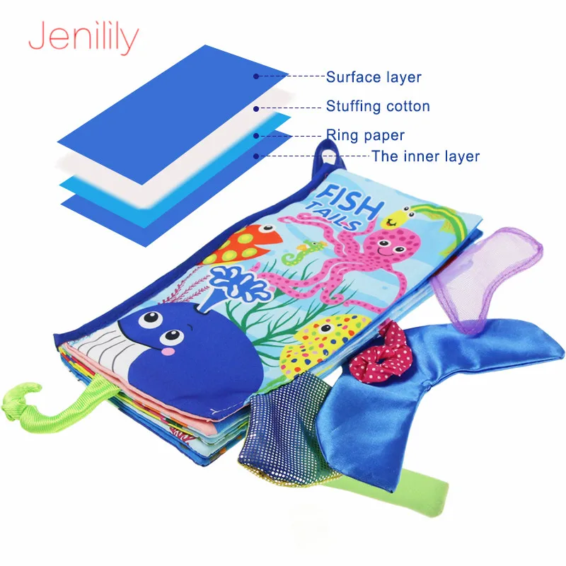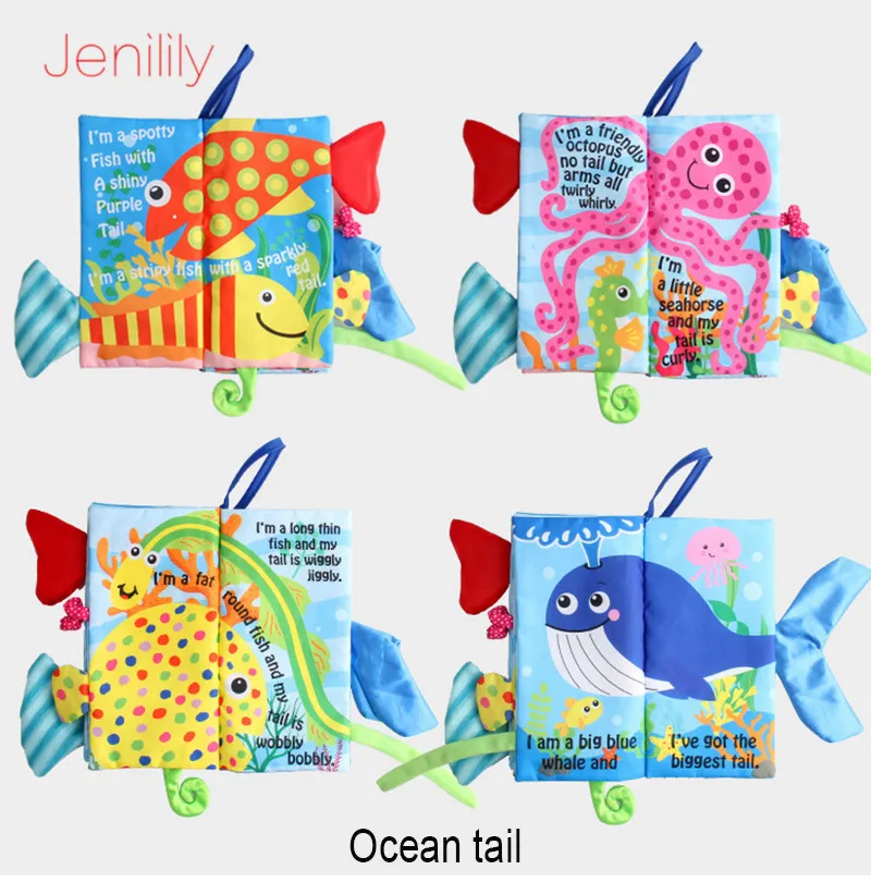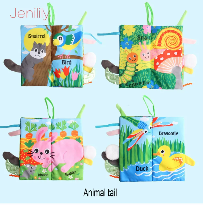 Книжка тканевая водонепроницаемая для новорожденных, Обучающая книжка из мягкой ткани с хвостом с животными, подарок для детей