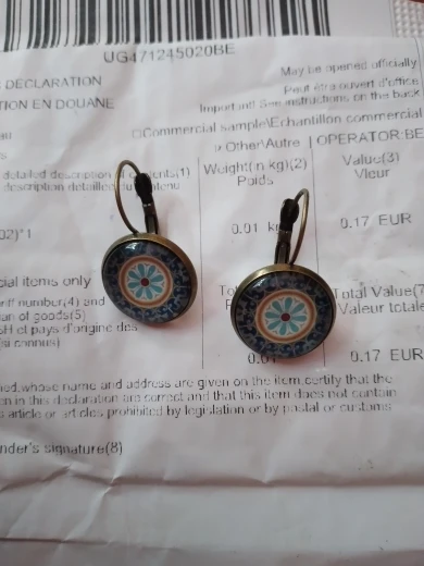 Заказ сделала 01.08.2020, посылка пришла 08.09.2020 в почтовый ящик. Сережки в реальности отличаются от фото на сайте: они не плоские, а выпуклые. К сожалению, сережки одна от второй немного отличаются по цвету, а у одной сережки немного сдвинут принт (не по центру) но надеюсь, этого заметно не будет. Застёжка хорошая, на ушах чувствуются (тяжеленькие). В целом - нравятся, продавца рекомендую: посылку отправляет быстро, не обманывает.