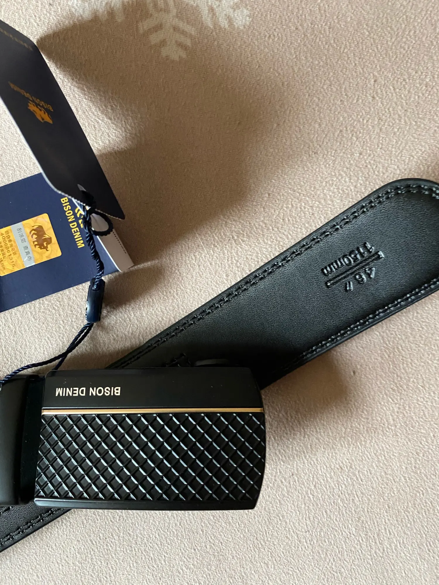 Мужской автоматический ремень BISON DENIM, из натуральной кожи, Роскошный дизайнерский ремень, N71416