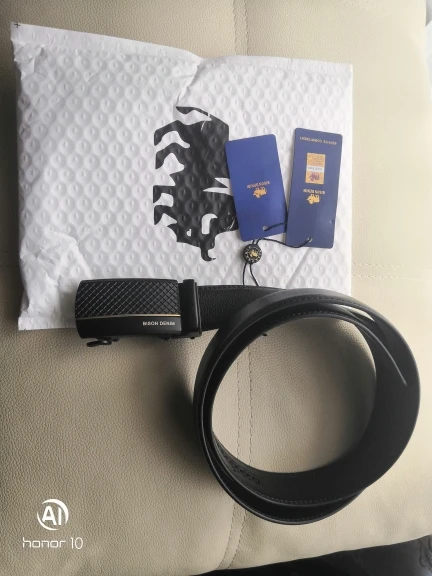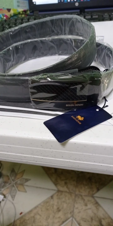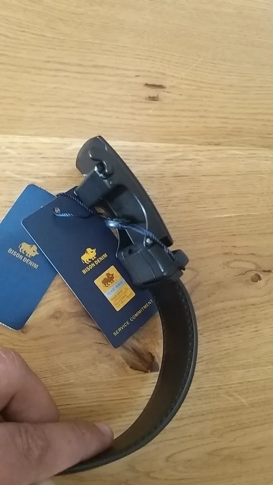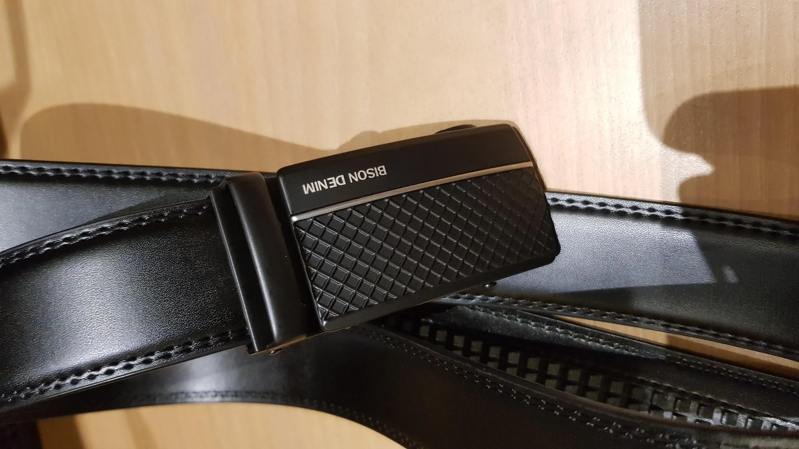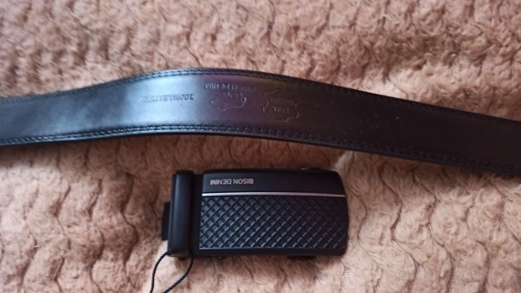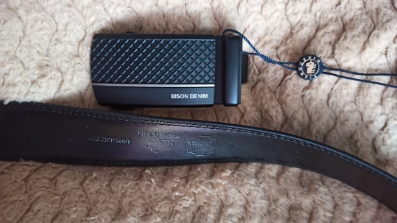 Доставка в срок компанией DPD. Данный производитель Bison хорошего качества делает вещи. Ранее покупал сумку барсетку. Единственно как мне кажется что это не кожа натуральная. либо прессованная или хорошая экокожа. Так в целом ремень смотрится неплохо.С внутренней стороны имеются пластиковые зубья для крепления ремня. Открывается ремень,чтобы ослабить пояс с помощью небольшого язычка расположенного снизу пряжки. Вообщем цена ,качество. Рекомендую к покупке.