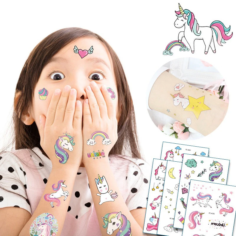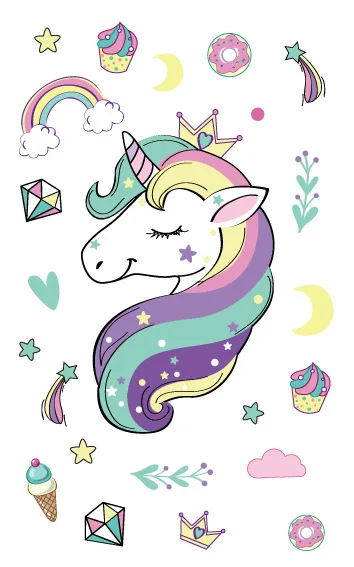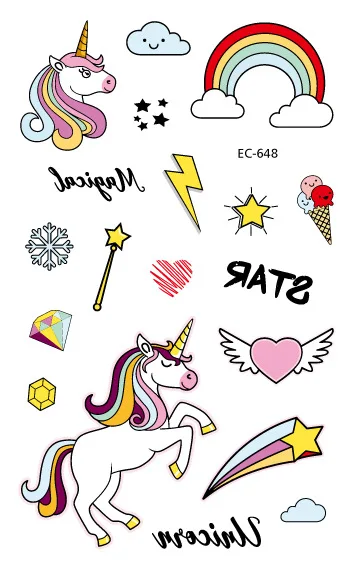 В виде единорога из мультфильма, тату для детей, милый комплект-Имитация Taty детей и Серебрянного цвета татуаж Temporaire боди-арт Водонепроницаемый Временные татуировки-наклейки