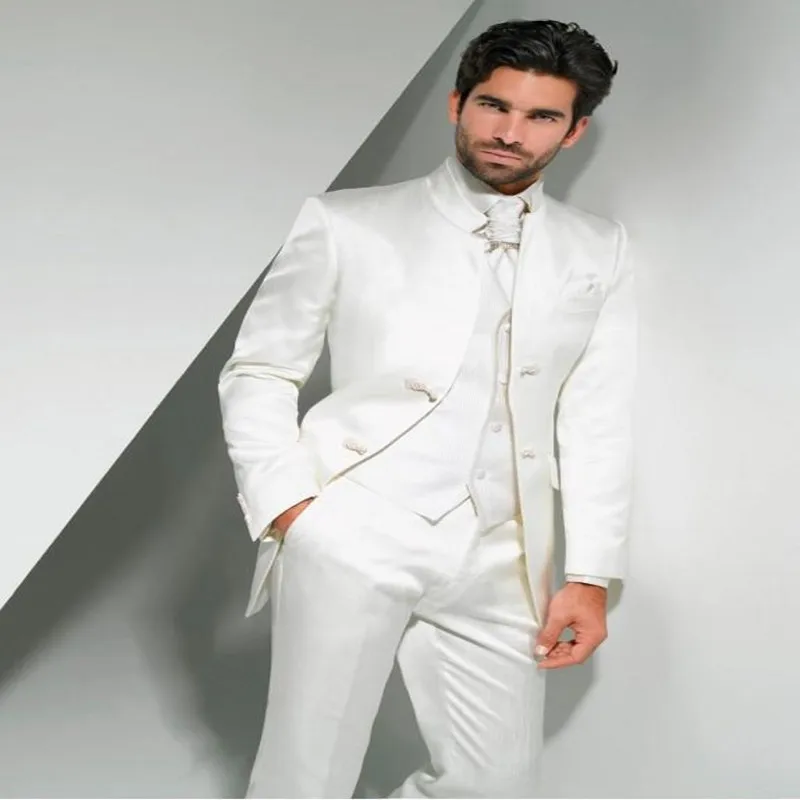 Смокинги для жениха, 2019 г., мужские белые костюмы для шафера, для свадьбы, выпускного вечера (пиджак + брюки + галстук + жилет)