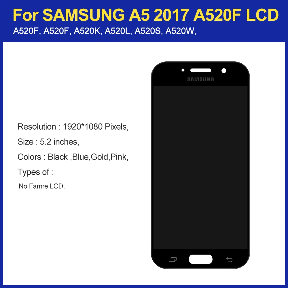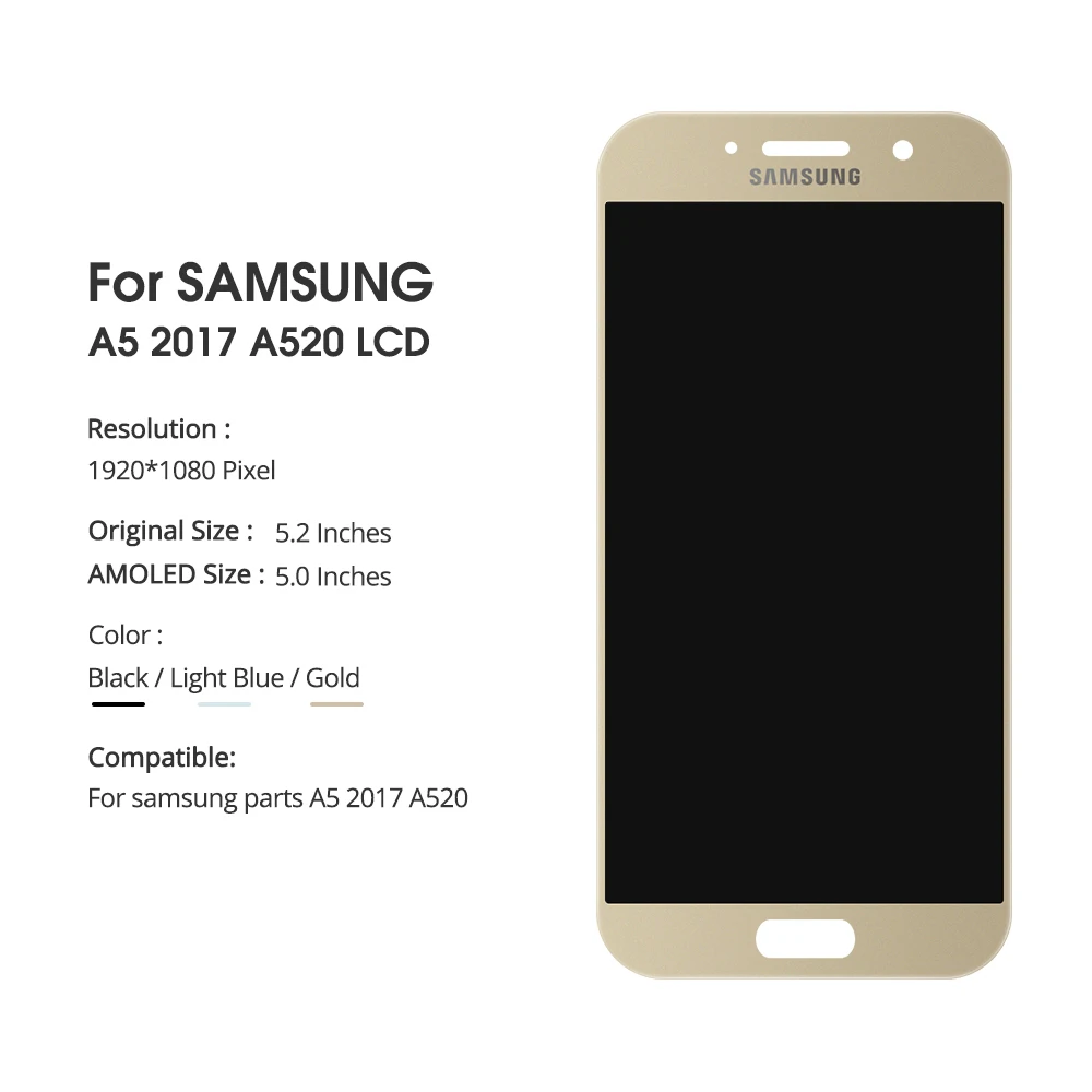 Оригинальный дисплей для SAMSUNG Galaxy A5 5,0, Super AMOLED ЖК-дисплей 2017 дюйма, сенсорный экран с дигитайзером, сменный ЖК-экран для A520, A520F, SM-A520F
