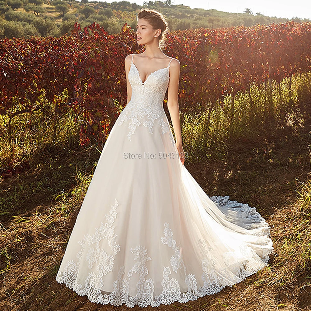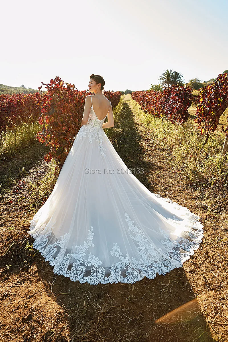 Бохо линии Свадебные платья Сексуальная Империя Кружева платье невесты V шеи спинки свадебные платья, платья невесты летнее платье