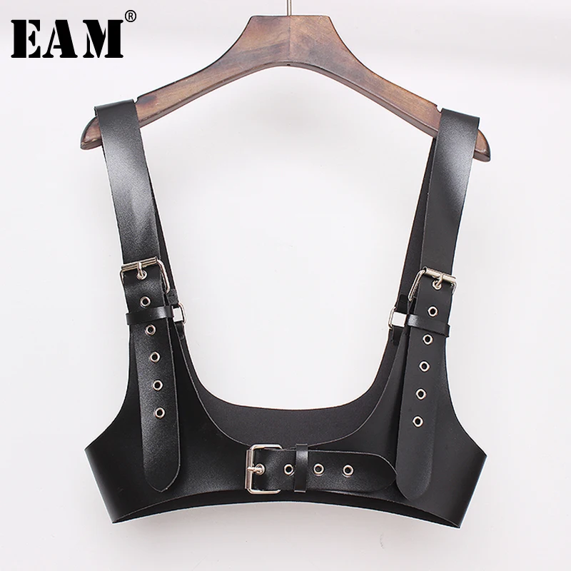 EAM Новинка 2022 года; Сезон весна-лето; Черная женская обувь из искусственной кожи с пряжкой; Широкий ремень; Модный универсальный ремень; JX461