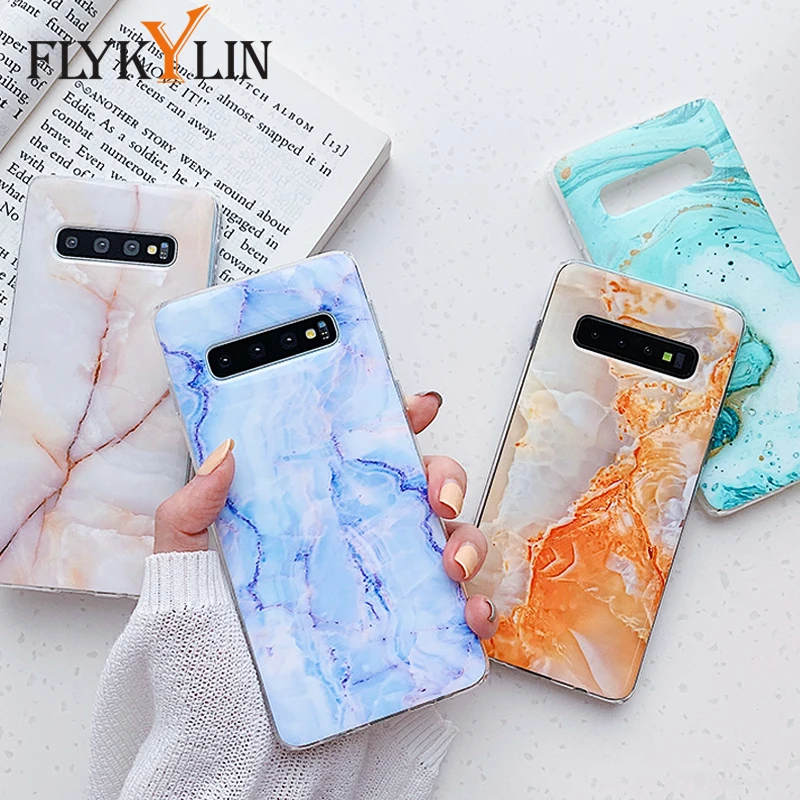 FLYKYLIN розовый синий мраморный чехол для samsung Galaxy S9 S8 S10 Plus S10e задняя крышка художественный лист цветок силиконовый чехол для телефона